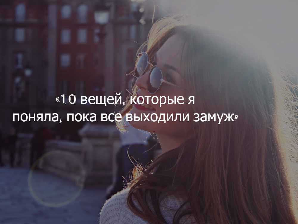 | Главная » Интересные статьи » Жизнь » «10 вещей, которые я поняла, пока все выходили замуж» |